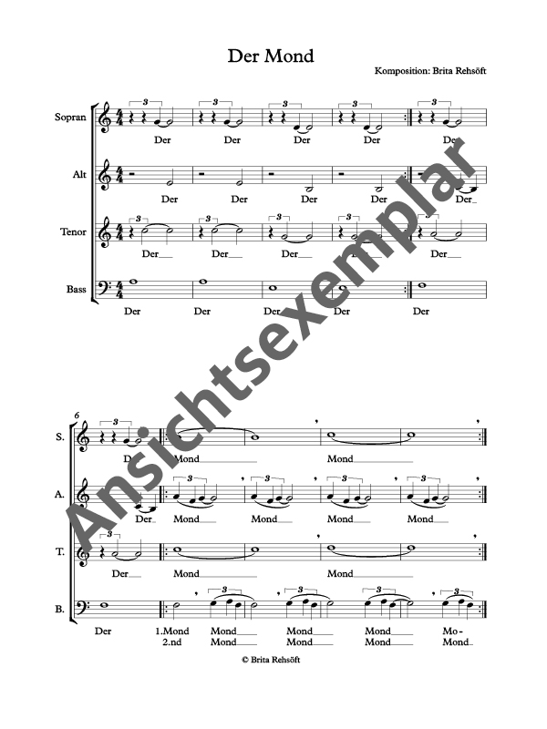 von Brita Rehsöft für Frauenensemble, Jugendchöre und gemischte Ensemble hier zum Schauen und Hören.